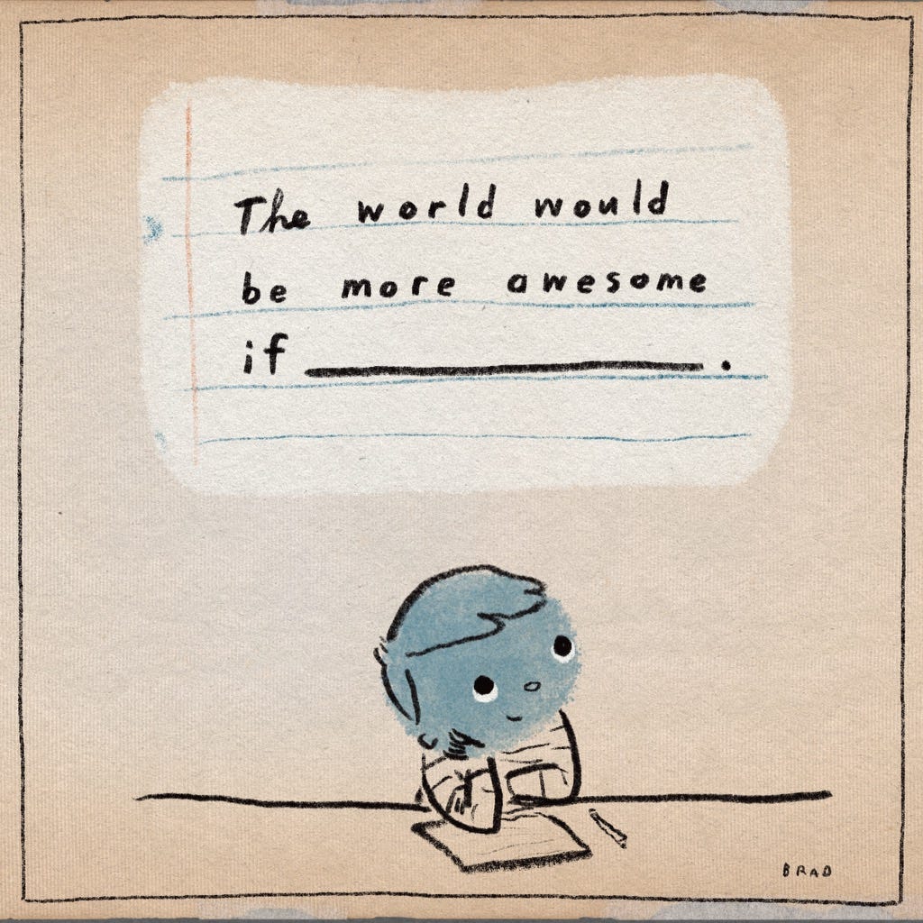 The world would be more awesome if . . . dogs could talk, I had lots of money, people had friends, everybody cared, nobody was ever mean, and on and on.