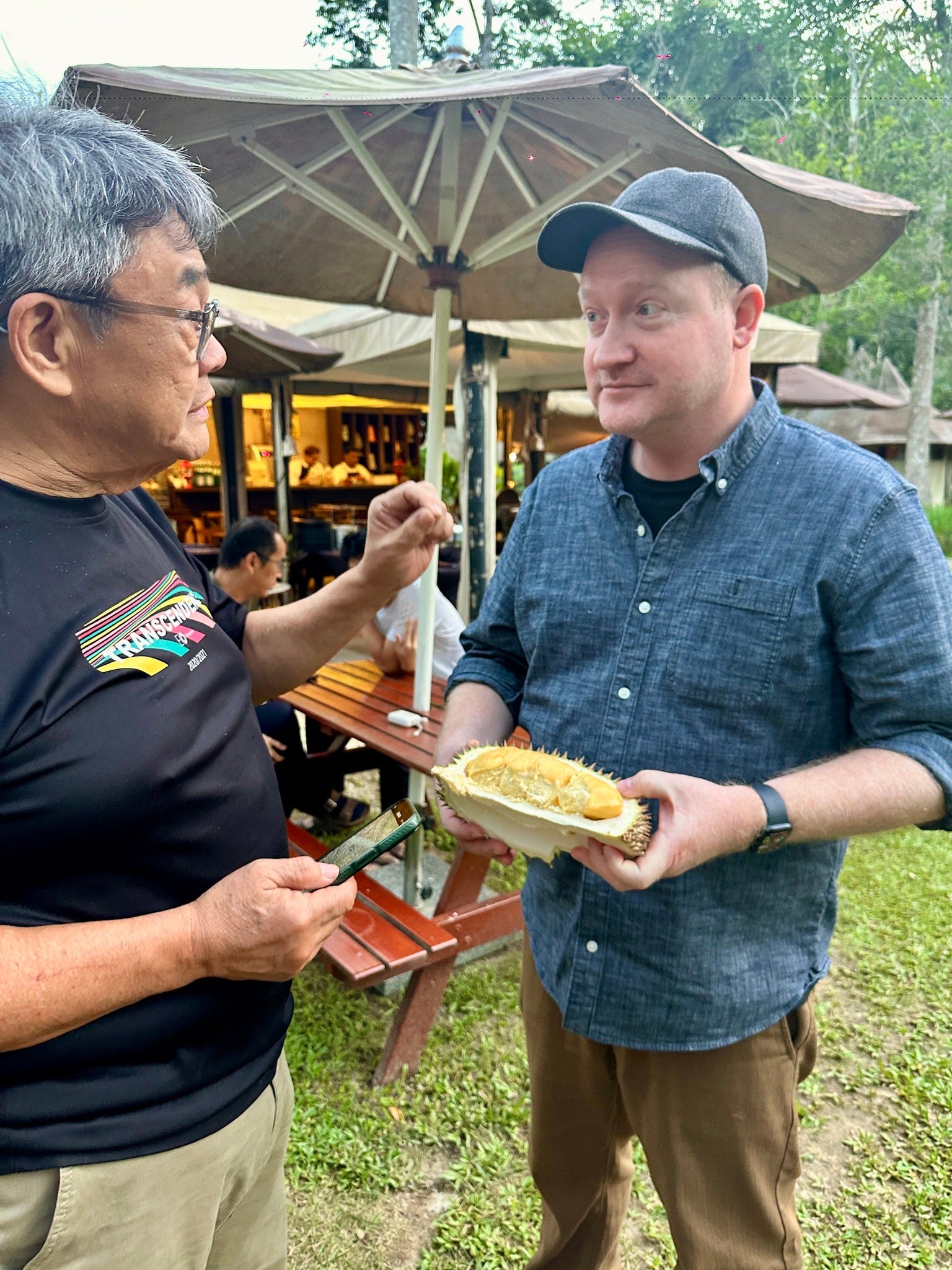 So, you can imagine my surprise when I heard people cheer when it was announced: “There is DURIAN for all to share outside!”
